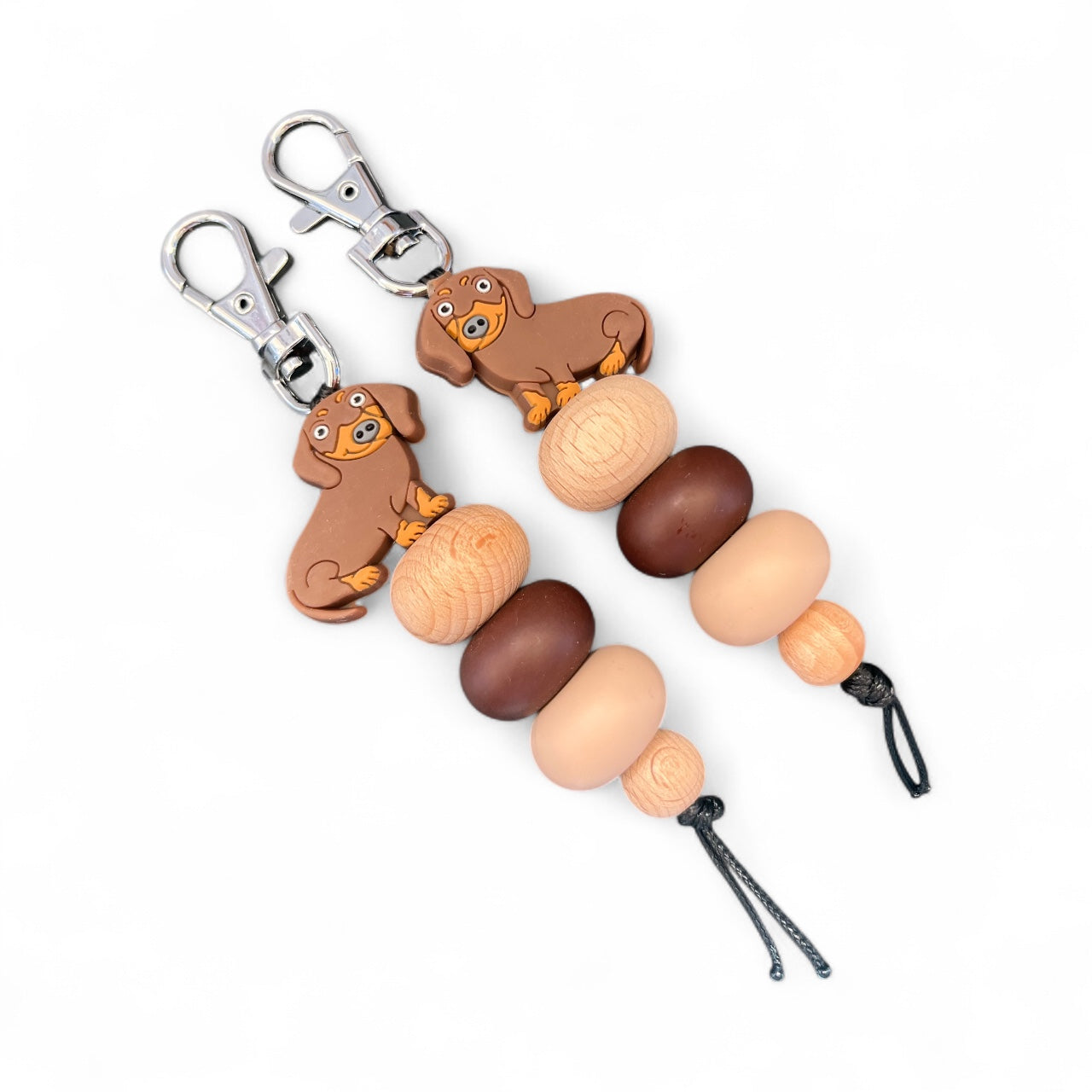 BEIGE DAISY & WOOD DASIY SILICONE BEAD KEYRING