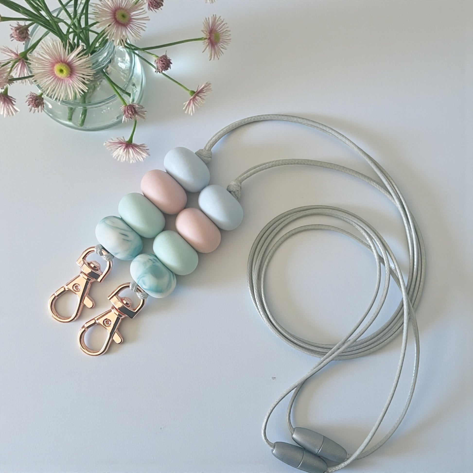 Pastels Teal Marble SILICONE BEAD Rose Gold LANYARD