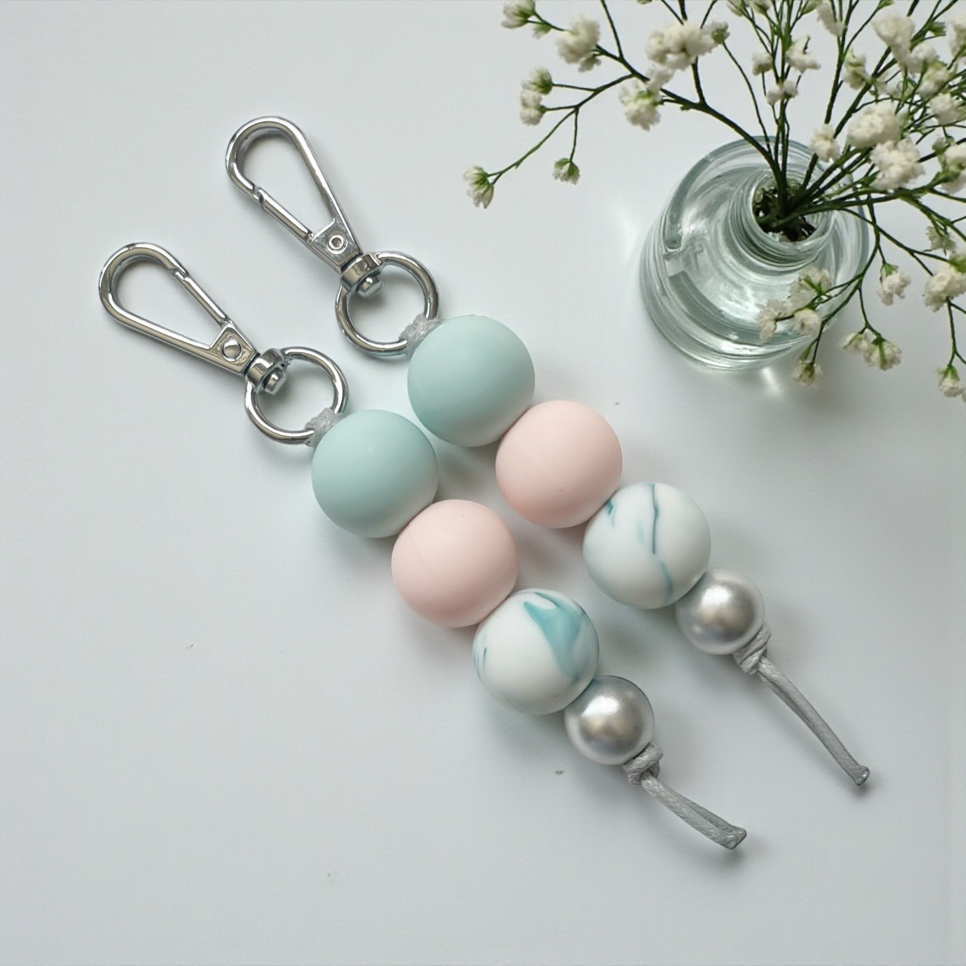 SEAGLASS PINK TEAL MARBLE SILICONE BEAD KEYRING